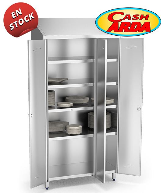 - Construido totalmente en acero inoxidable, acabado satinado, dispone de techo inclinado y 4 patas de 115 mm de altura